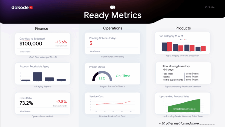 No more digging through 1,000 of files and dashboard to find answers. We bring all your data together into one trustworthy source, making informed decisions effortless.